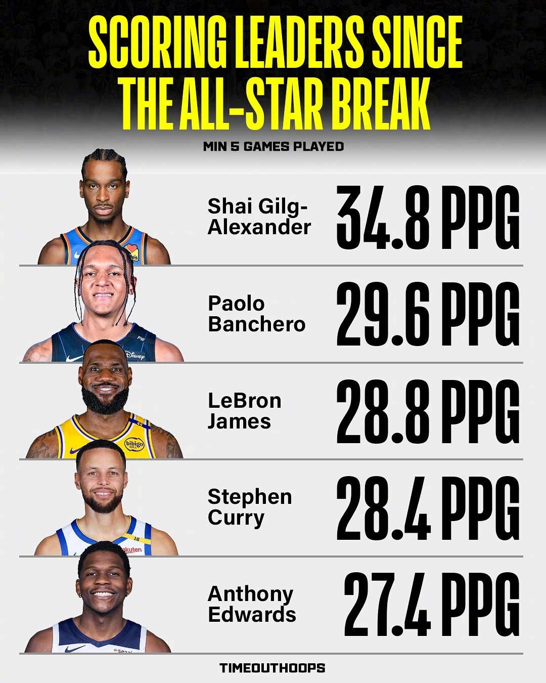 2025-03-19 11:35:17全明星后得分榜:鸭梨34.8分断档第一 班凯罗第二 詹库分列三四位