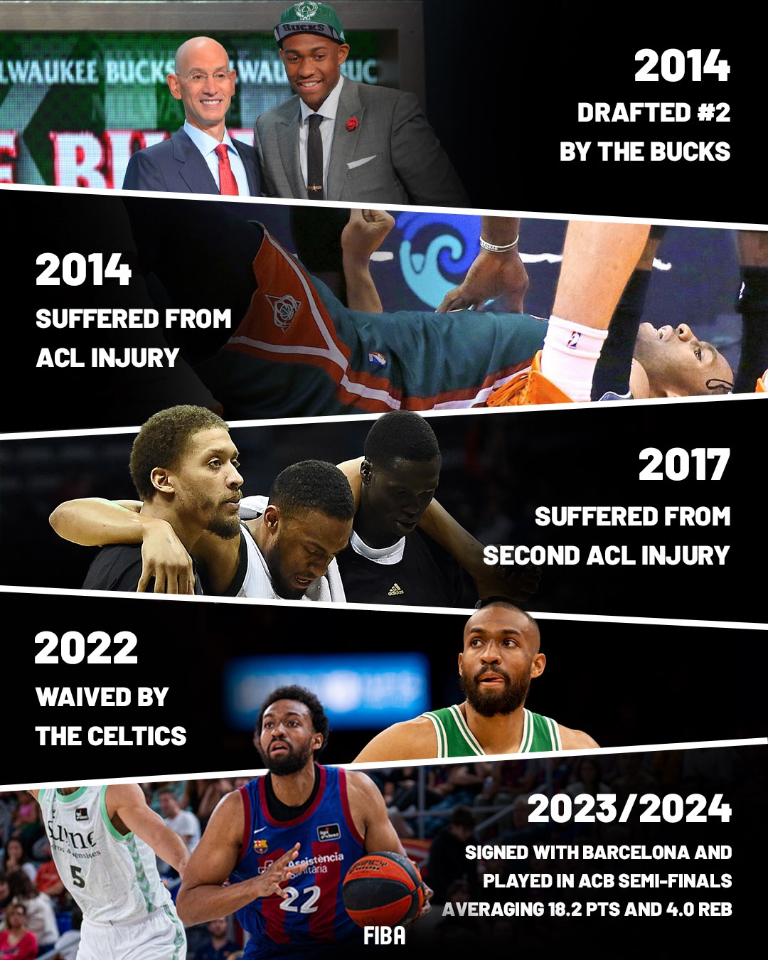 贾巴里-帕克2014年参加选秀被雄鹿以榜眼签选中,2014年新秀赛季左膝前十字韧带断裂,赛季报销。