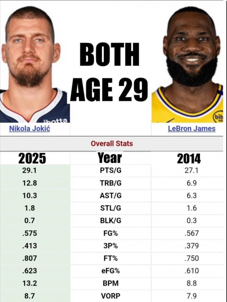 2025-03-22 10:51:3529岁约基奇场均29.1分12.8板10.3助1.8断 各项数据皆>同期詹姆斯