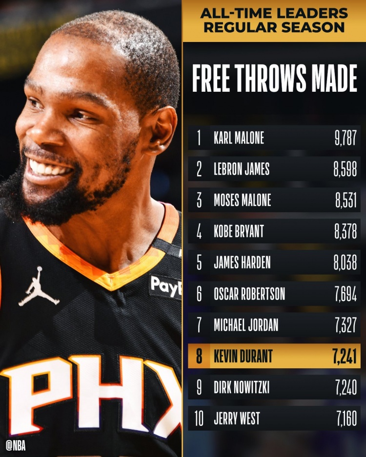 2025-03-10 12:55:49❗KD常规赛罚球命中数达到7241次 超越诺维茨基升至历史第8!