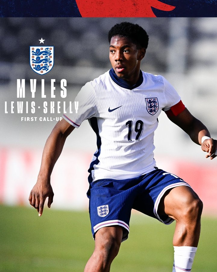 英格兰队则在官推晒出了斯凯利的海报,并写道:“斯凯利首次入选成年队!”