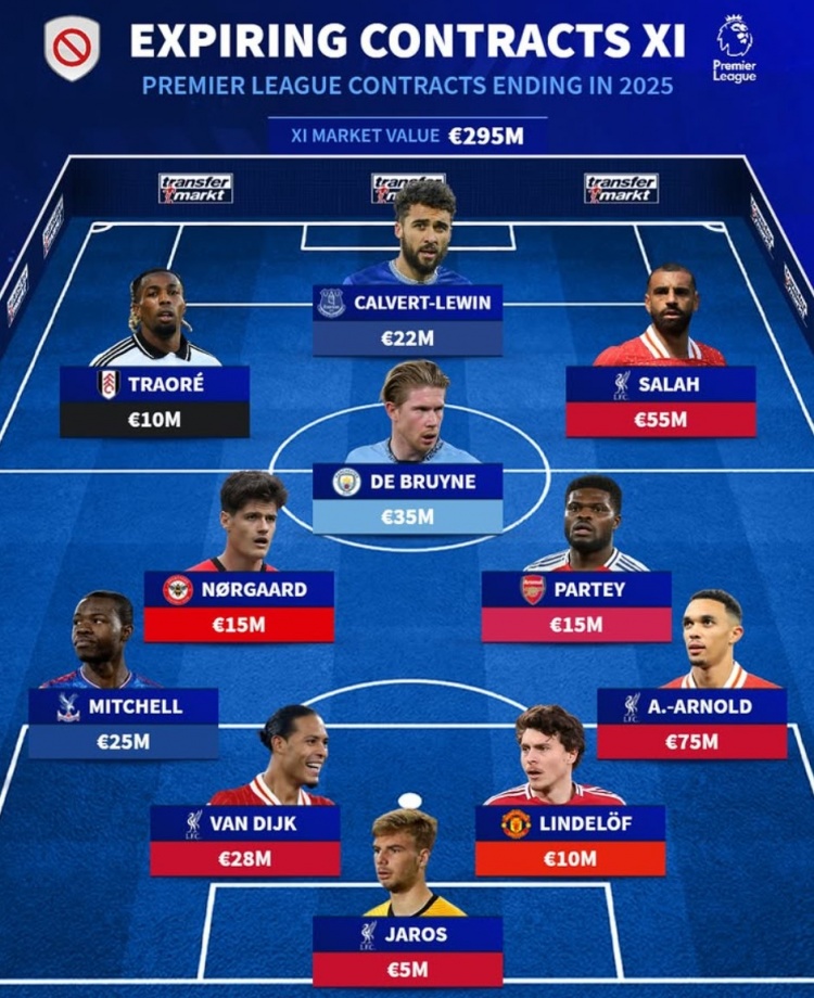 2025-03-18 02:05:18英超合同到期最贵阵:阿诺德领衔红军4将,德布劳内、托马斯在列