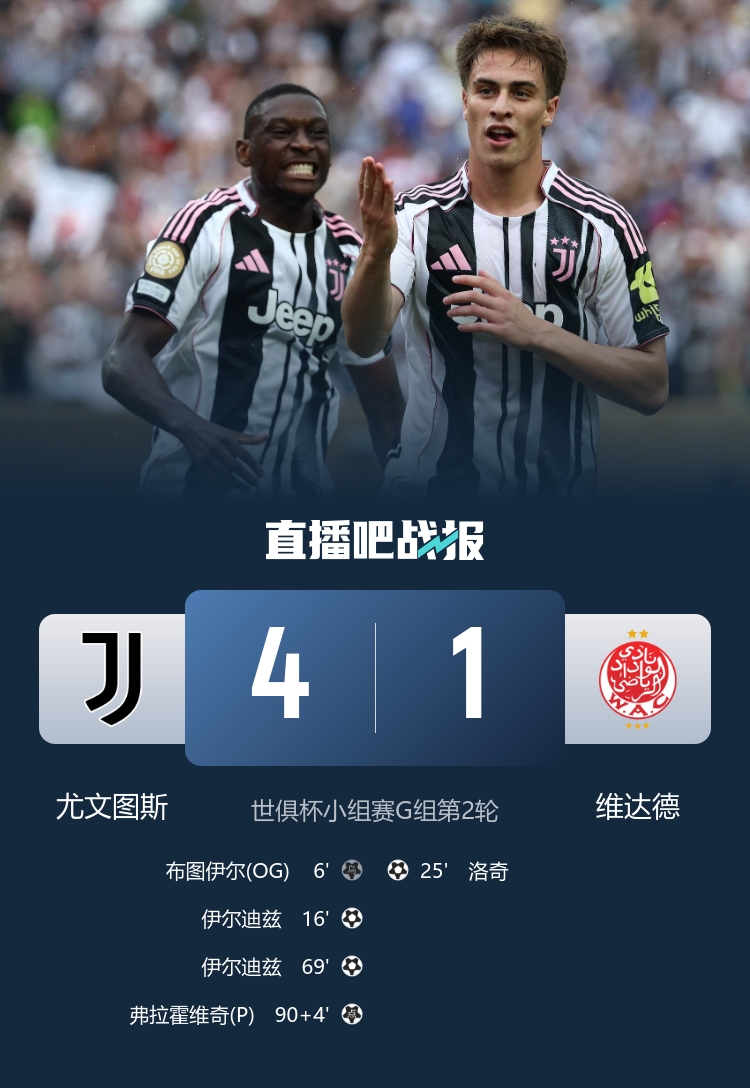 2025-06-23 00:59:552025年06月23日 两连胜!尤文4-1维达德暂居小组第一 伊尔迪兹双响+造乌龙DV9点射