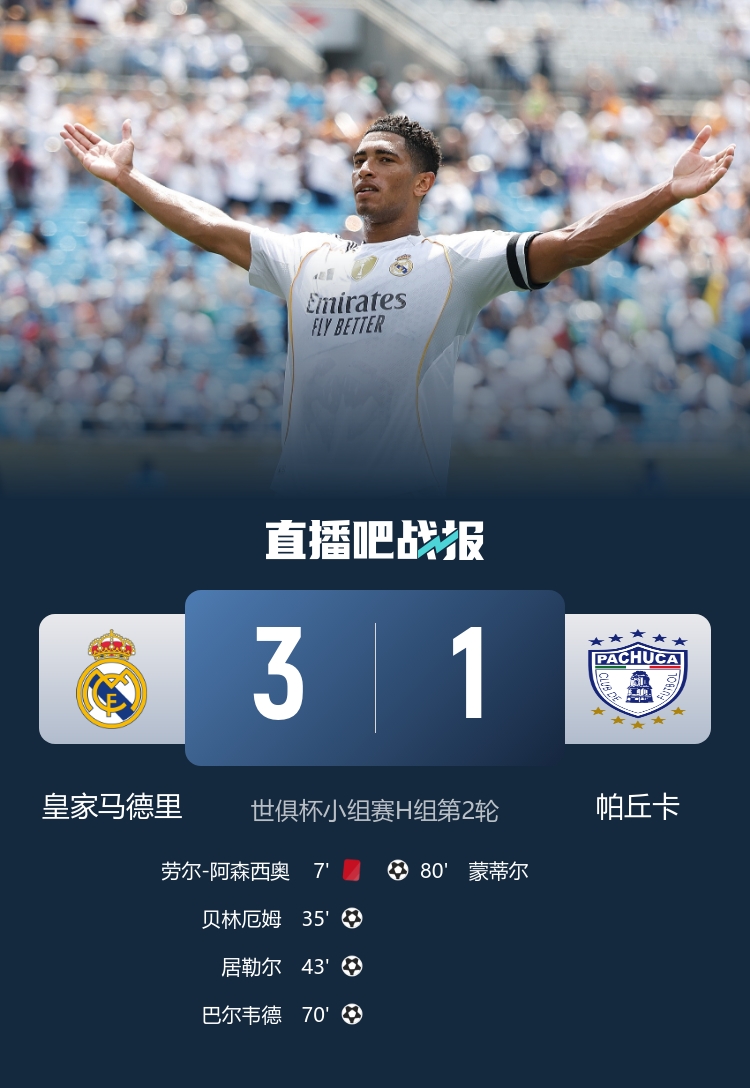 2025-06-23 03:51:212025年06月23日 登顶!十人皇马3-1帕丘卡取首胜 贝林居勒尔82破门阿森西奥直红
