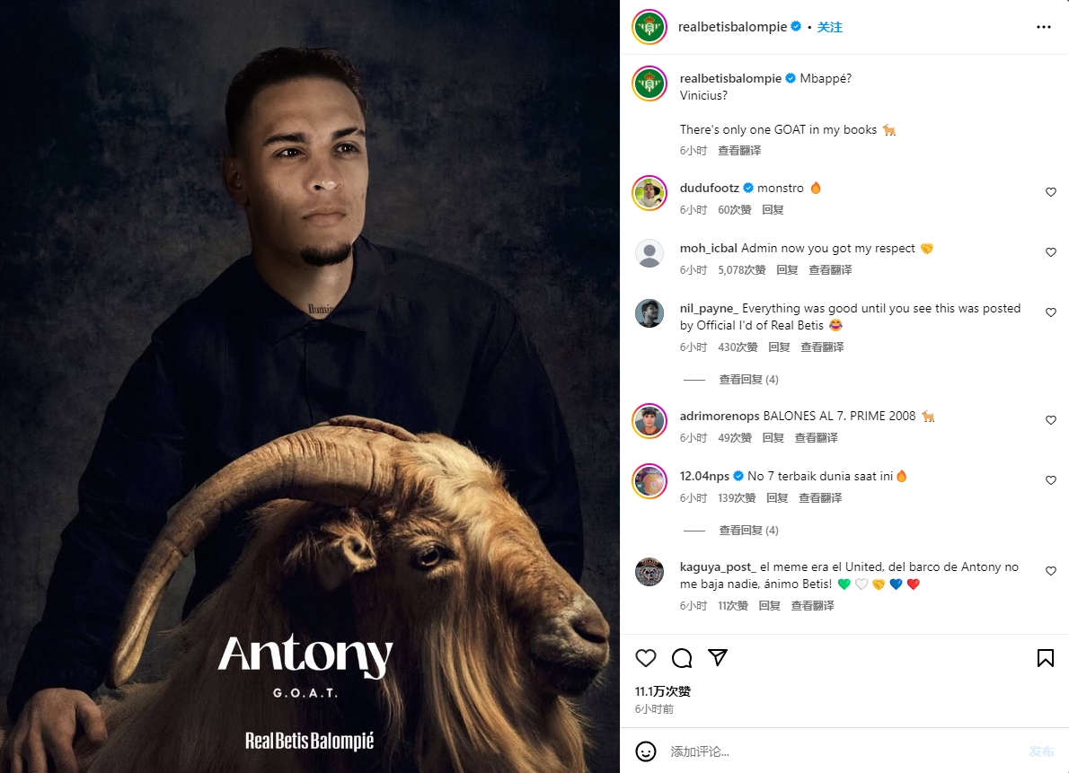 2025-03-02 18:29:02贝蒂斯官媒:姆巴佩?维尼修斯?我的字典里只有一位GOAT—安东尼