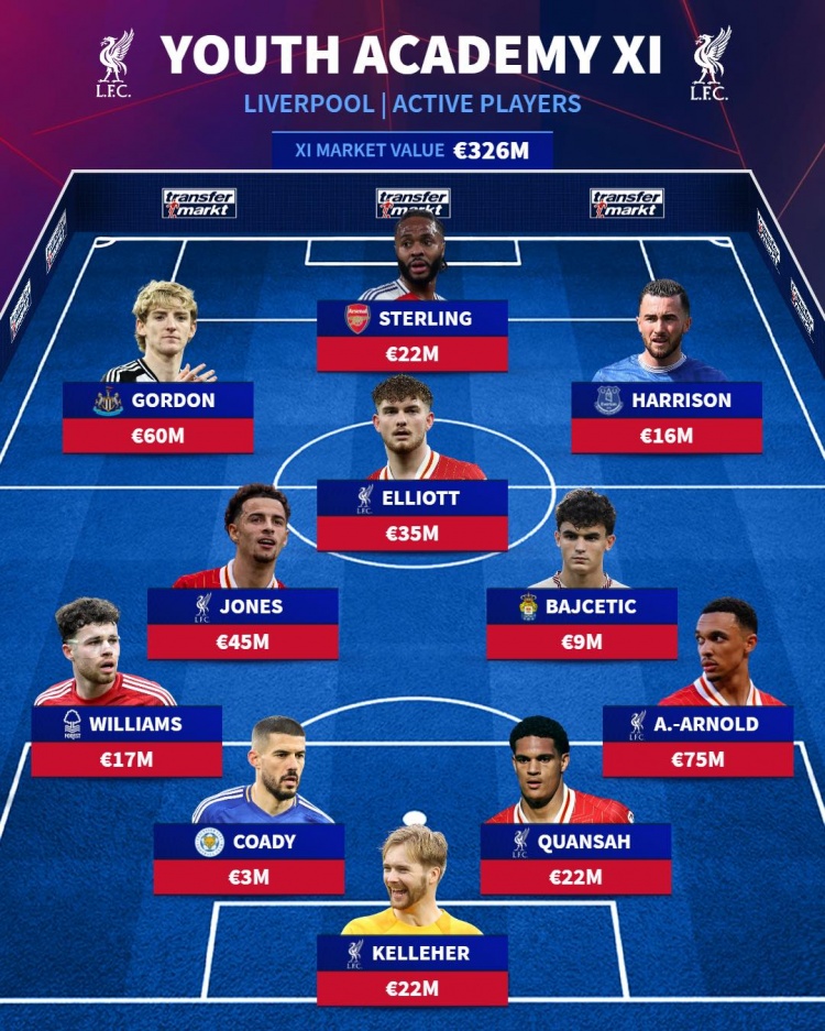 3月3日讯 德转列出了曼联、曼城和利物浦各自青训出品球员的最佳阵容,其中,帕尔默、桑乔、斯特林、奥利塞等人入选。