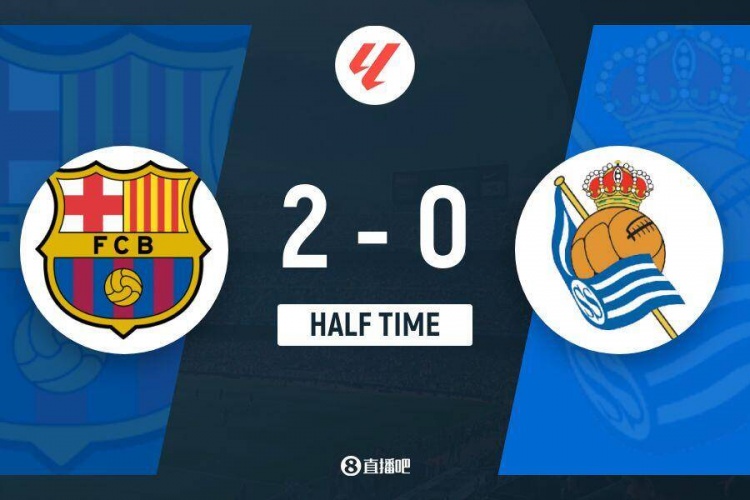 上半场比赛结束,巴塞罗那2-0皇家社会。