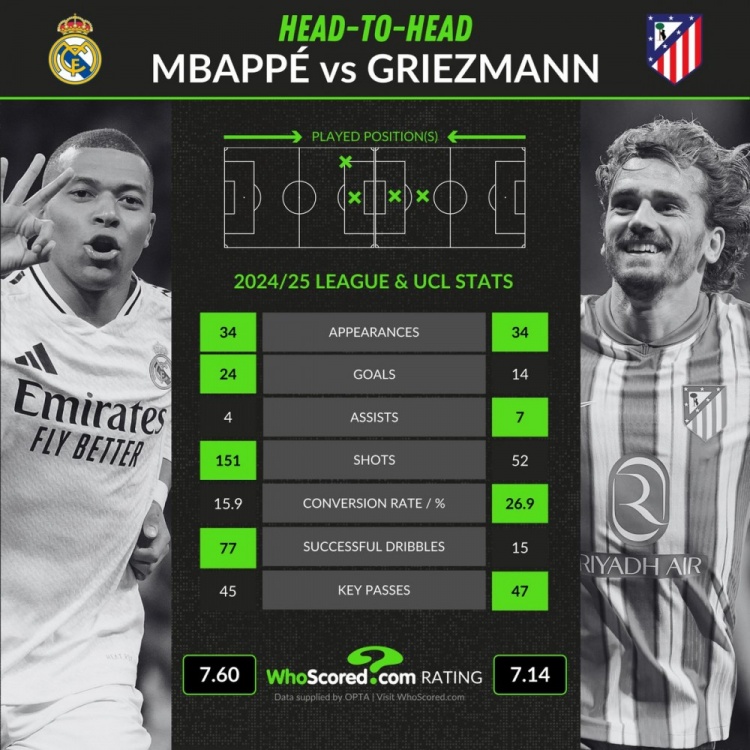 2025-03-05 03:53:05本赛季西甲+欧冠关键数据对比:姆巴佩24球4助攻,格子14球7助攻