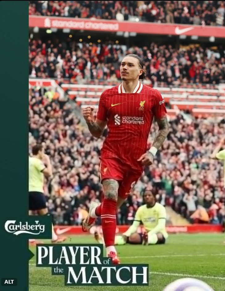 2025-03-09 14:19:22进球+造点!利物浦官方:努涅斯当选本轮英超队内最佳球员
